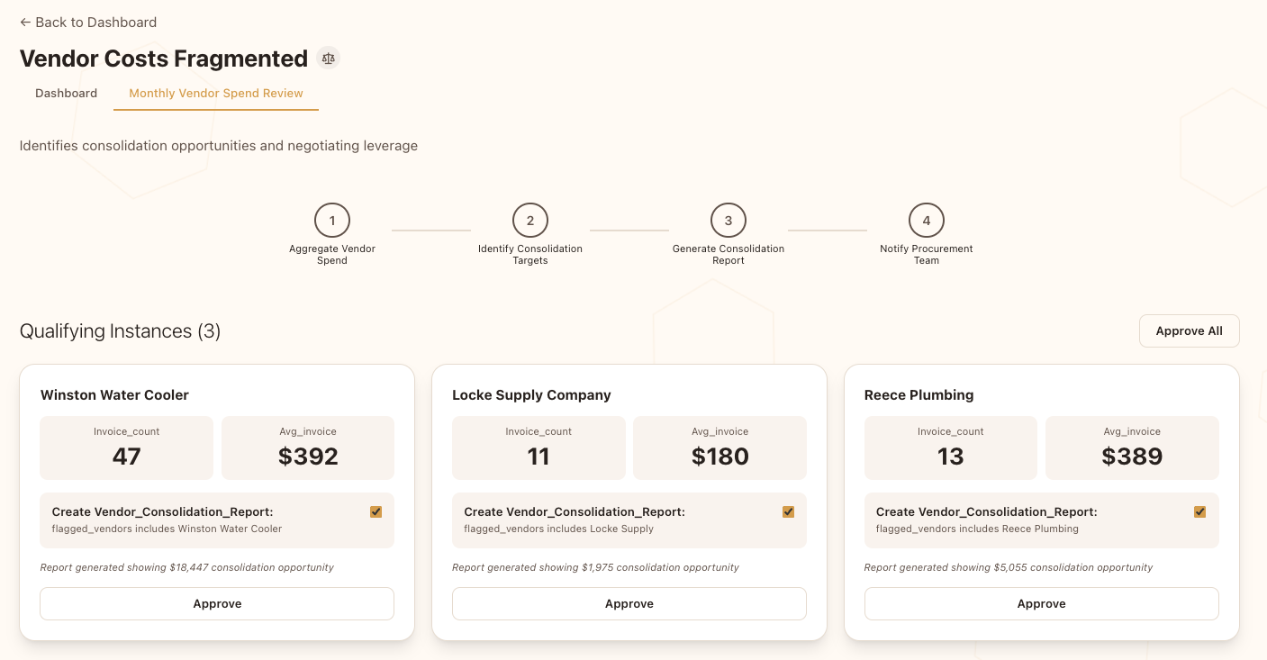A system-determined autonomous orchestration with an AI-configured workflow and human-in-the-loop approvals